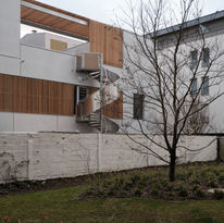 - Préfabrication de l’ensemble des façades, béton et bois, permettant un gain de temps et d’énergie sur le chantier